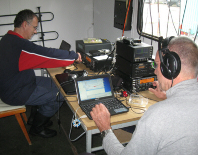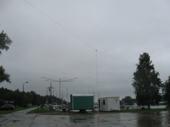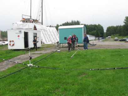 Wie auf dem Bild gut zu erkennen war das Wetter mehr als schlecht, es regnete bis Samstag nachmittag ununterbrochen. Der Grillabend am Freitag fand in der alten Werfthalle des Hafens statt, da war es dann trocken. Aber wir ließen uns nicht vom Wetter beeindrucken. Am Samstag um 12.00 UTC begann dann der Kontest. Eine Station hatten wir zur Running-Station erklärt, und die andere Station sammelte immer fleißig Multis. Die Empfänger der K3-Transceiver sind wirklich gut, wir funkten jeweils auf unterschiedlichen Bändern, aber trotz der PAs konnten keinerlei gegenseitige Störungen festgestellt werden. Das Ergebnis gegenüber letztem Jahr konnten wir auf Grund vieler Multis wesentlich verbessern.